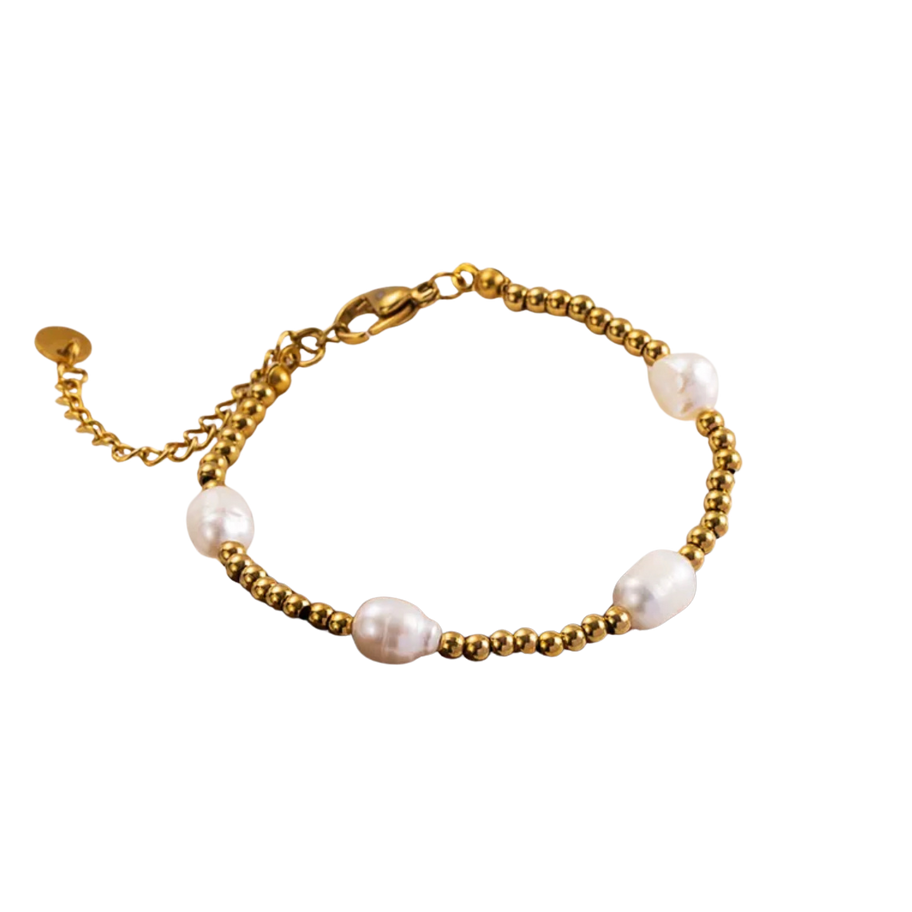 The Josie Bracelet from Solunah beautifully captures coastal elegance with a touch of celestial charm, featuring a stainless steel and gold plated bracelet adorned with luminous freshwater pearls. Meticulously crafted for timeless beauty, this piece offers lasting durability without compromising on style. Ideal for those who appreciate ocean-inspired sophistication, the Josie Bracelet seamlessly blends natural elements with modern design. At Solunah, every creation reflects a commitment to quality and enduring elegance. Elevate your jewelry collection with this exquisite accessory that embodies both grace and resilience.