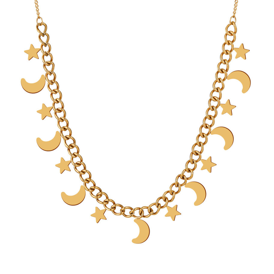 The Layla Necklace from Solunah is a stunning choker style piece, expertly crafted from durable titanium steel and finished with elegant gold plating. Its delicate moon and star design perfectly captures the brand’s signature blend of coastal elegance and celestial charm. This necklace offers timeless beauty, making it an ideal accessory for those who appreciate subtle yet meaningful jewelry. Designed to complement any outfit, the Layla Necklace embodies Solunah’s commitment to quality and inspired craftsmanship. Elevate your look with this captivating titanium steel and gold plated necklace that shines with celestial allure.