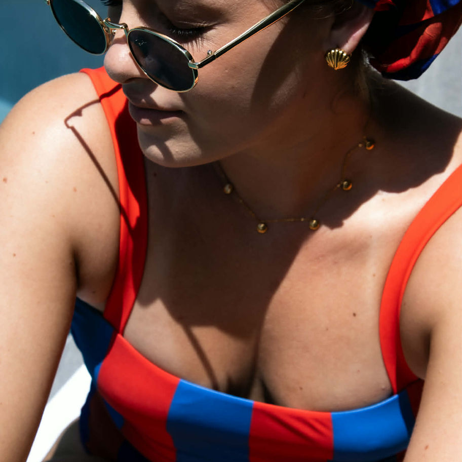 Experience timeless elegance with Solunah’s Shell Double Sided Stud, a real gold plated double sided stud earrings designed to blend coastal charm with a retro classic style. Crafted to withstand everyday wear, these earrings are waterproof and non tarnish, ensuring lasting beauty by the sea or under the stars. Perfect for those who appreciate jewelry that harmonizes ocean-inspired sophistication with celestial grace. Elevate your collection with pieces that reflect Solunah’s commitment to quality and enduring design.