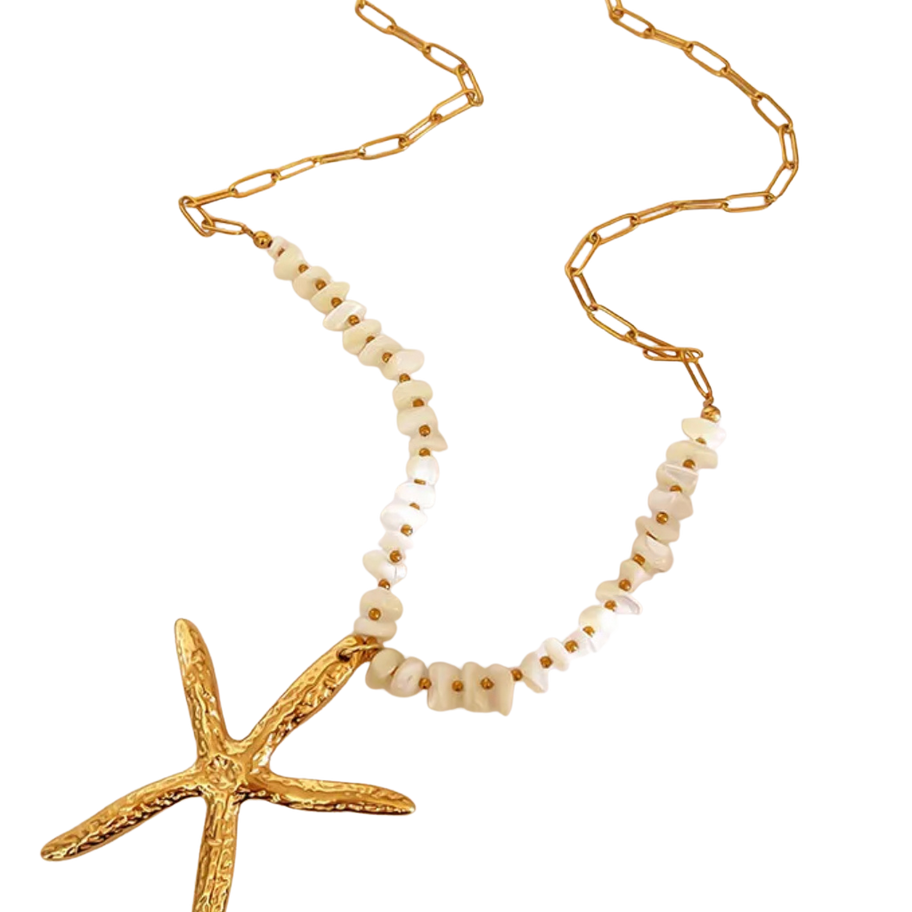 Experience the perfect harmony of coastal elegance and timeless beauty with Solunah’s Starfish Beaded Longline Necklace. Featuring a durable stainless steel and gold plated chain, this piece showcases a natural shell pendant that captures the essence of the ocean. Designed with a long line silhouette, it adds a graceful, elongating touch to any outfit. Crafted with a non-tarnish design, this necklace promises lasting shine and effortless style. Embrace the celestial charm of Solunah’s ocean-inspired collection, made to elevate your everyday look.