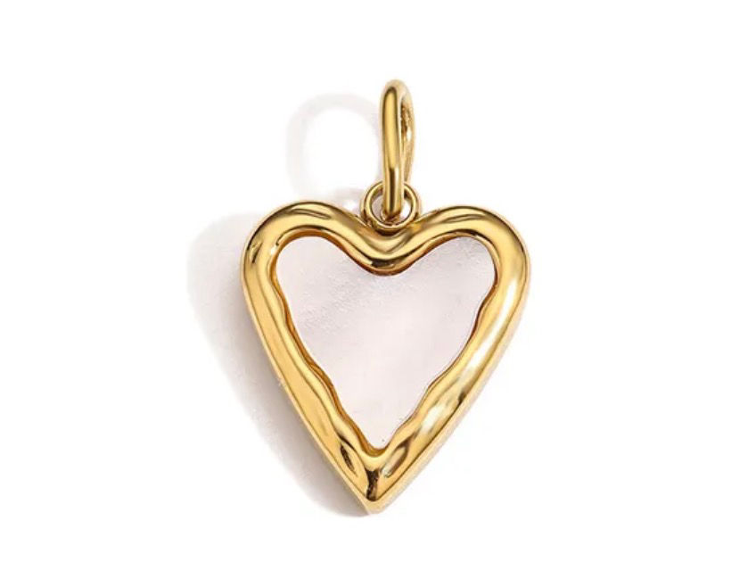 Discover the White Heart Pendant from Solunah, a stunning stainless steel and gold plated heart pendant measuring 16x13mm, perfectly embodying coastal elegance with celestial charm. Designed for timeless beauty, this delicate piece reflects our ocean-inspired aesthetic while offering durability and shine. Ideal for everyday wear or special occasions, it captures the essence of refined simplicity. Elevate your jewelry collection with this elegant symbol of love and grace, crafted to complement your unique style.